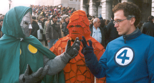 (Uomo Ragno), Chiara (Susan Storm) e Fabrizia (Supergirl), Venezia, 4 marzo