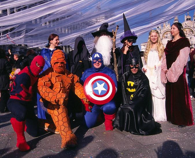 (Uomo Ragno), Chiara (Susan Storm) e Fabrizia (Supergirl), Venezia, 4 marzo