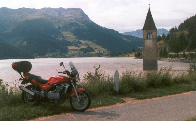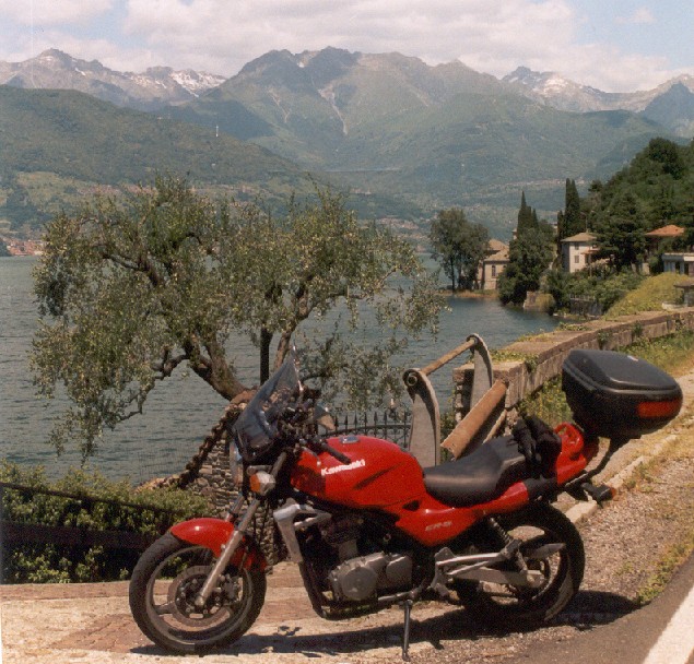 scintillante del lago sfiorato dal sole pomeridiano, quando la moto supera