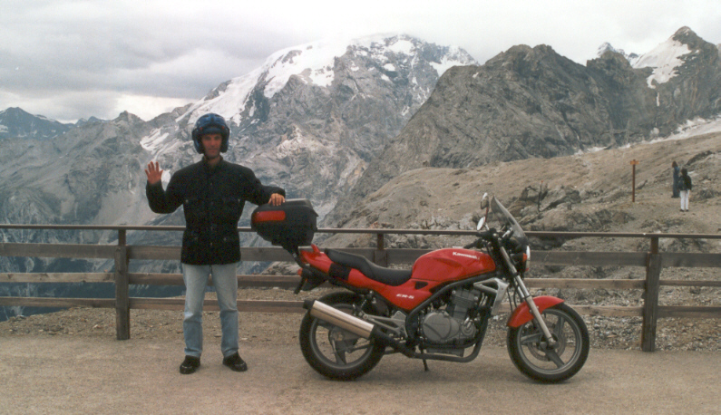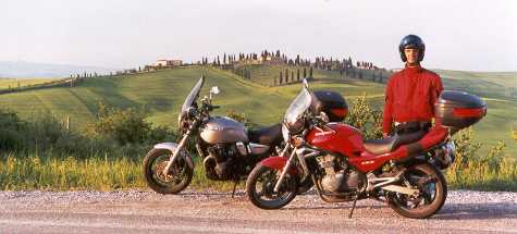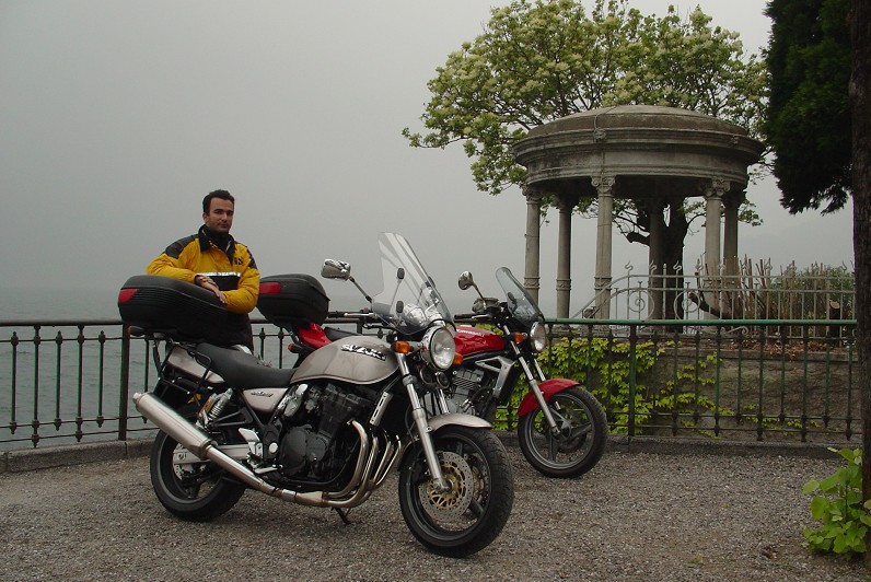 Nei prossimi mesi cercherò di ampliare la pagina per la Suzuki "pure motorcycle concept" GSX750, che ho guidato per gentile concessione di Paolo nel 2002, e la pagina per la nuova moto, Suzuki"due cuori due leoni" SV650 2003. Seguiranno altre moto che abbiamo guidato in passato quali Ducati Pantah 650, Honda XL350R, e Cagiva Aletta 125. Ecco un'immagine della quadricilindrica GSX750 (86cv, 215km/h) in compagnia della piccola Kawa bicilindrica della quale abbiamo parlato sopra e di Paolo: