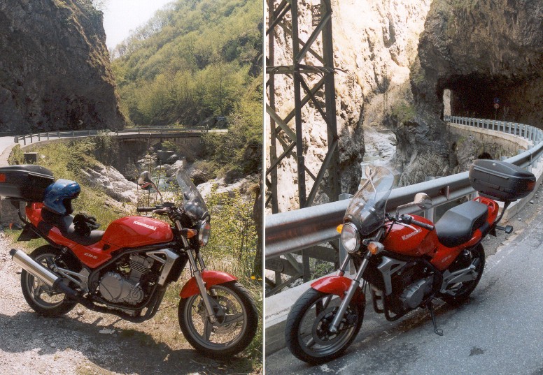 alla fine della strada in discesa bloccati da una sbarra. Con una moto