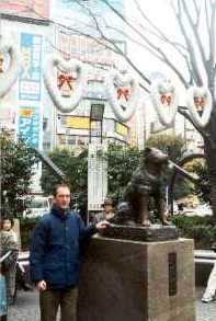 alla statua di Hachiko, il povero cane che per lungo tempo era andato ad