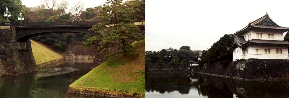 Tokyo, 20 dicembre 2000. Ponte di ferro e angolo del palazzo imperiale.